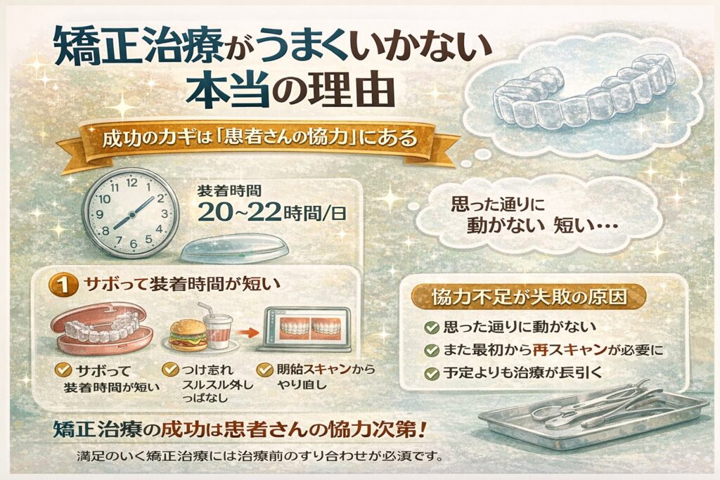 治療後、リテーナーを装着しないと後戻りしてしまうリスクがあります。