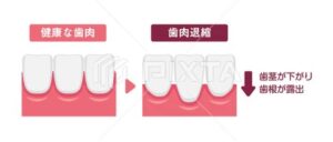 歯肉退縮とは、歯ぐきやその下の骨が下がり、歯の根が露出する状態です。